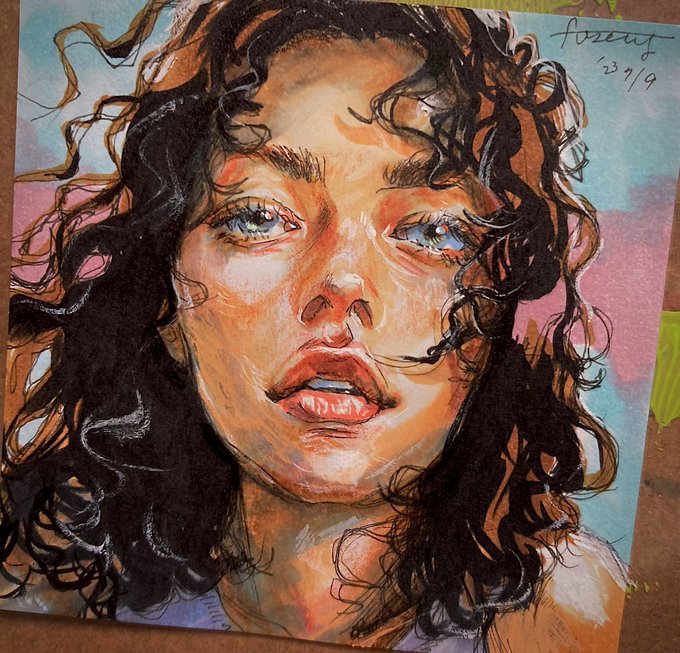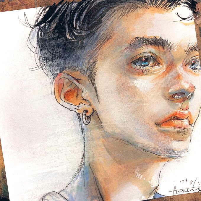 陰を置く、赤味を差す時 あたかも触るようにニブを滑らせます 人に触るように I slide the nib as if by touch. #イラスト #drawing #付箋紙に描いてます