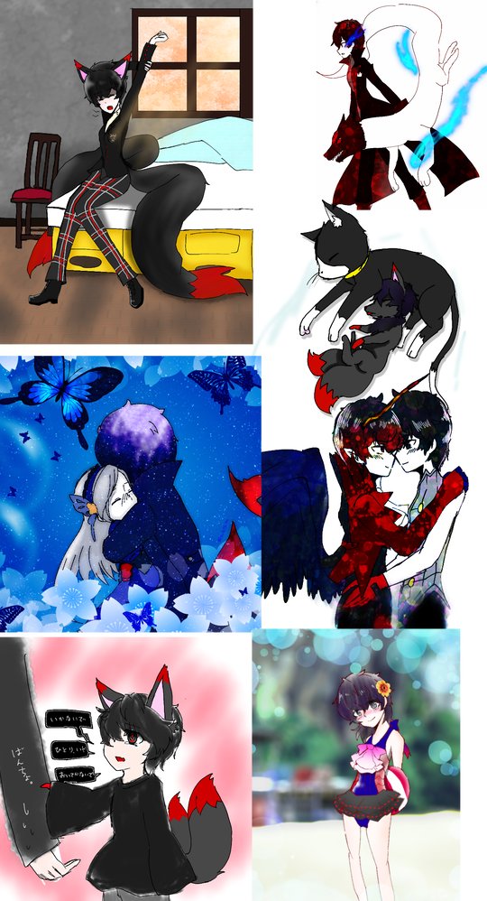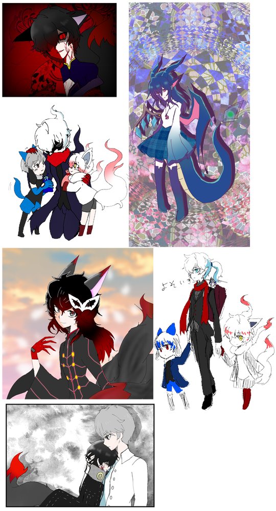 2 4 #今月描いた絵を晒そう 2枚目はトレスだよっっ ペルポケ擬人化はザーッと描いたやつだから代表格で勘弁 22/03/30 23:41
