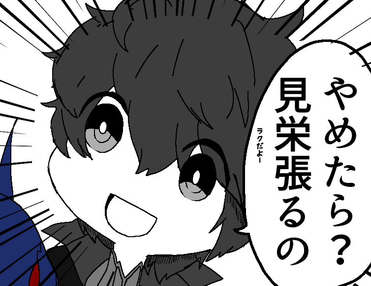だいたいマジ描きですけど、気分が乗らなかったり思いついたネタシャッシャッて描く時は落書きになるんすよ。自分。 落書きにはアタリすら描きませんし、塗りも割と適当です。( ˘ᵕ˘ ) (上が落書き下がマジ)