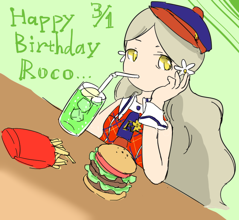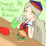 みち…コロ…ロコちゃんお誕生日おめでとう 即席ですまないけど、アメリカンサイズハンバーガーお食べ…