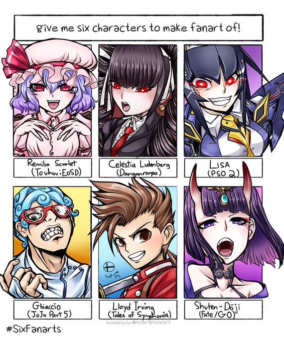 Hopping in on this~ These are just personal picks bc I wanted an excuse to draw them. #SixFanarts #SixFanartsChallenge #touhou #touhouproject #danganronpa #PSO2 #jojosbizarreadventure #Tales #FGO