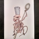 🖼️ "Chef" ✒️ Bolígrafos sobre opalina 220g 💵 Disponible a la venta: $700 MNX En cuanto a esqueletos, este es uno de los más complicados que he hecho, me la pasé horas viendo referencias de ratas en el Pinterest. #inktober #art #PortfolioDay @ConoceArtistas @ApoyaAlArtista