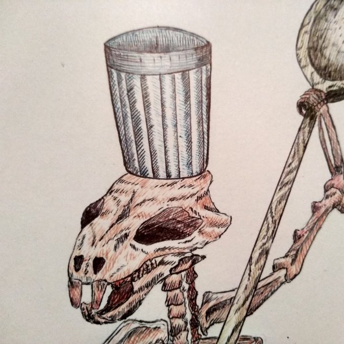 Por qué la rata parece aprobar ese pisotón? Tiene un significado que sea blanca? Ese cráneo perteneció a alguien de la realeza? En general, que está pasando aquí? No lo sé. @ApoyaAlArtista @ConoceArtistas #ballpointpen #inktober #ilustration
