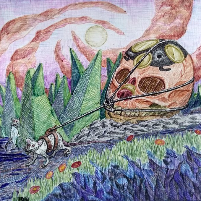 🖼️ Larga jornada bajo el acecho ✒️ Bolígrafos sobre opalina A5 220g 💵 Disponible a la venta: $700 MNX 🇲🇽 Ojalá les hubiese inventado alguna historia a estas ratas, de verdad, es que están tan en su mundo que quiero saber que planean. #inktober #givaninktober #ballpointpen