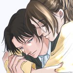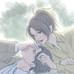 #秋のリヴァハン線画リレー2022 ひよこ豆さん(@hiyokomame_sngk )の線画を塗らせていただきました!!! 見つめ合う瞳と狼りばいさんの手の位置が好きすぎます。。。!!! 素晴らしい作品を塗らせていただき、楽しかったです💕