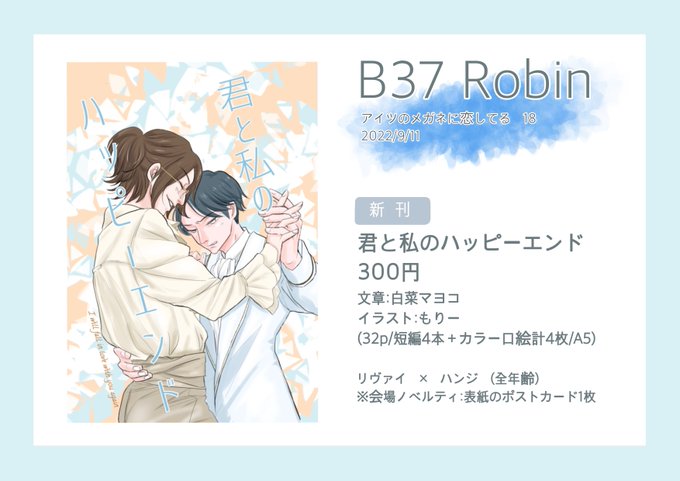 9月11日東京流通センター(TRC)【アイツのメガネに恋してる18】にサークル参加します! 今回も白菜マヨコさん(@mayoko8931 )と合同サークルです🙌 全年齢のイラスト+短編小説の合同誌作成中です〜✨✨ #メガ恋18 youyou.co.jp/only/_event/?i… twitter.com/messages/media…