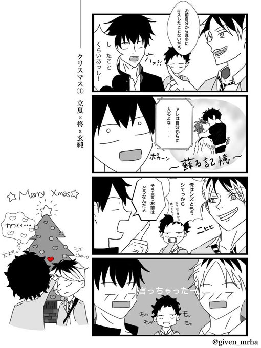 🦌🎅🏻❄️Merry X'mas🎁⛄🎄 今年はギヴン7巻、うらがわの存在DVD、CDをみれて聴けて幸せでした💙❤️💚🧡💜🖤💛 皆様の絵もたくさん拝見できて感無量です🤤💗 初四コマ漫画を描いてみました😳 クリスマスっぽくないし、不慣れですみません😱💦 秋春間に合わず😵💫 #ギヴン #given #ギヴンファンアート