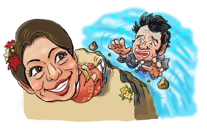 @yumeko_822_ #山村紅葉 #船越英一郎 #イラスト 崖から落としたと‥試しに描いてみました~
