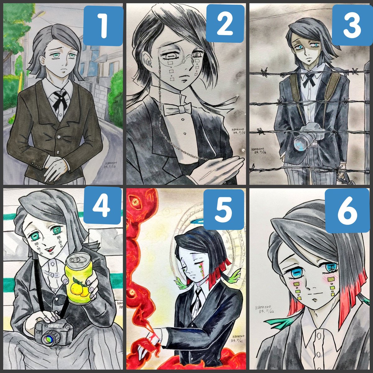 #今月描いた絵を晒そう 11月はFF様の絵を自分の絵柄で描く🏷に参加して とても勉強になりました☺️そして楽しかった🥰💕来月も頑張ります☺️ 1⃣南さん 2⃣ぱひゅ丸さん 3⃣とのむらさん 4⃣きっぽさん 5⃣八角さん 6⃣夢🌸月さん 7⃣下弦のもちさん 8⃣9⃣🔟えんむ推しさん の絵柄を描かせていただきました🥰