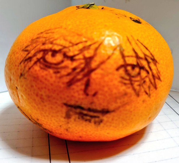 みかんを貰ったので、何となく推しを描いてしましたが……(、._. )、 下手すぎて、誰か……解らなくなってしまいました。( ´ . _. `) みかんに描いてあるキャラがわかった人は、コメントくださると嬉しいですm(_ _)m(クイズ感覚で見てもらうと、嬉しいです( ̄▽ ̄;)) #絵バンス #推し