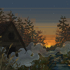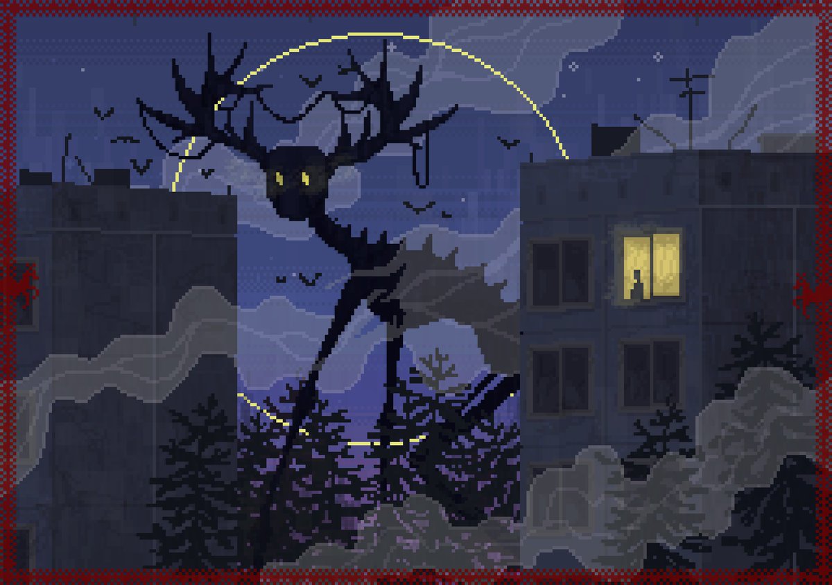 imagine, you want to fall asleep, but you can't, and decide to open a window into the dark and mysterious land of spirits #night #landscape #pixelart