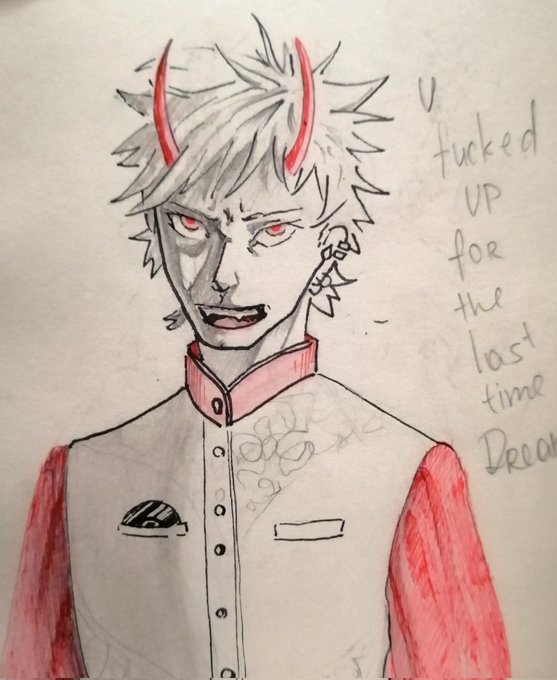 Oh and this sketch Idk why, i just did this This was an idea of militari suit but with sheer red sleeves Of course all on red, white & gold colores Phrase is random #tommyinnitfanart #TOMMYINNIT #dsmpfanart #dsmp #sketch