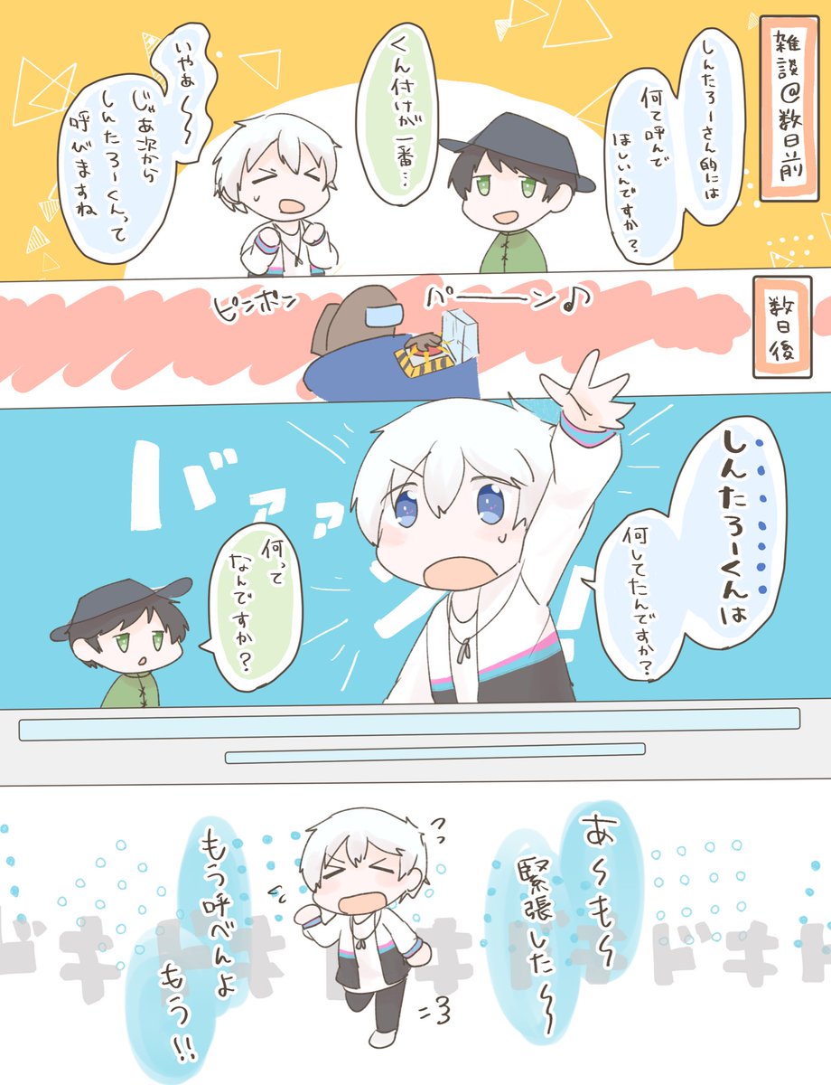 31 527 11/3高田村 さん付け呼びに壁を感じるしんたろーとリスナーおらふくんのチャレンジ👊微笑ましかったです😊 #見るかもわからん #狂人たろアート 21/11/07 14:27