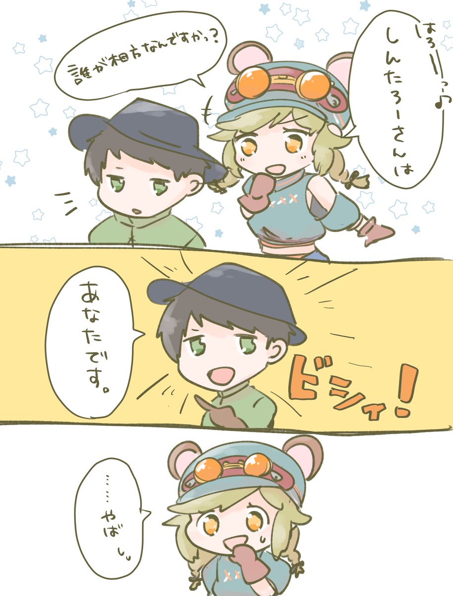 2/7のとびユニ近アモで好きだったところ☺️ 流れるような嘘(相方はよっちゃん)と引くやんみちゃん🐿 #とびユニ #狂人たろアート #やんみの絵