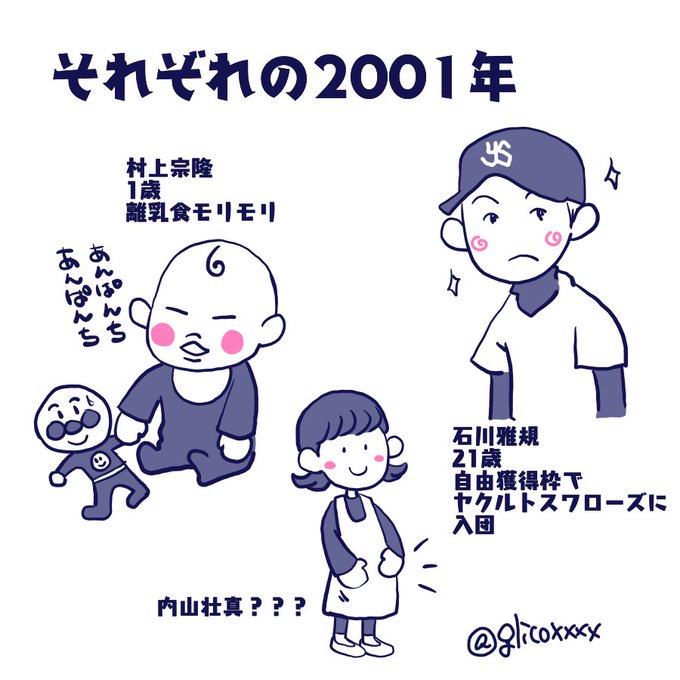 2001年にはシュンペイタくーんは存在すらしてないのか カツオすげぇな (これは2021年にソーマの年齢がちょっと話題になった時に描いたやーつ)