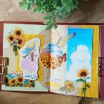 コラージュの面白さにハマって、あっという間にノリがなくなった…… 自分で水彩色鉛筆とかで描いた絵を主役に貼るの楽し~でもなんか他の素材に引き立ててもらうのがひとのふんどし感あってちょっと罪悪感も😅でも楽し~ #水彩色鉛筆 #トラベラーズノート #コラージュ初心者