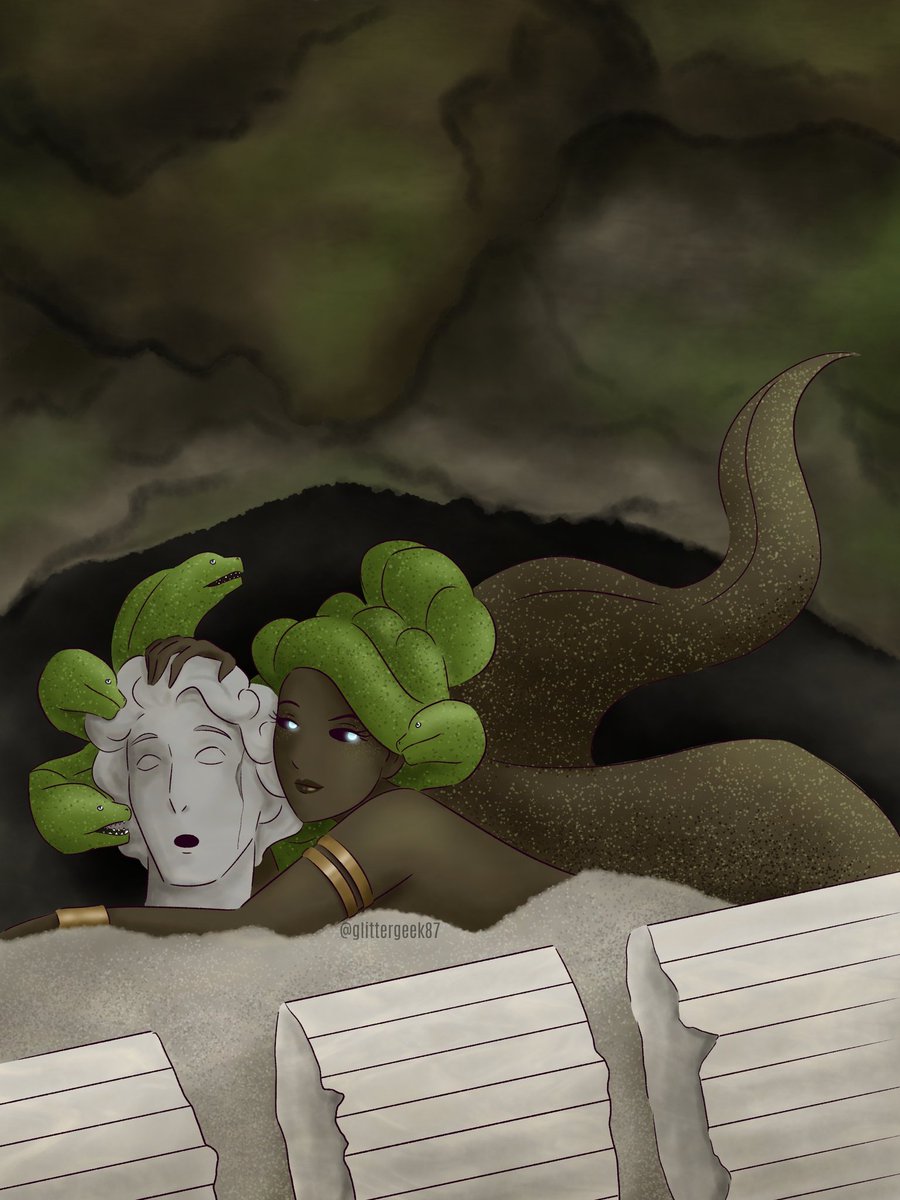 Final prompt of #mermaywaters #mermay #mermay2022 #Mermaid with Ruins! Decided to draw a moray eel Medusa #medusa