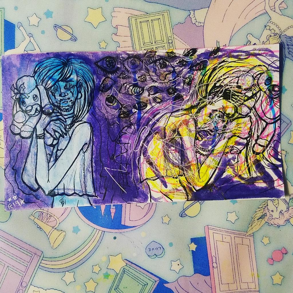 💊🐝😢I WON'T REST UNTIL I DON'T CARE😢🐝💊 traditional mixed media - 2019 #transartists #queerartists #lgbtqartists #artistsoftwitter #furryart #furryartist #queerart #actuallyautisticartist #lgbtqart #transart #mentalillness #traumacore #ventart #xiuxiu