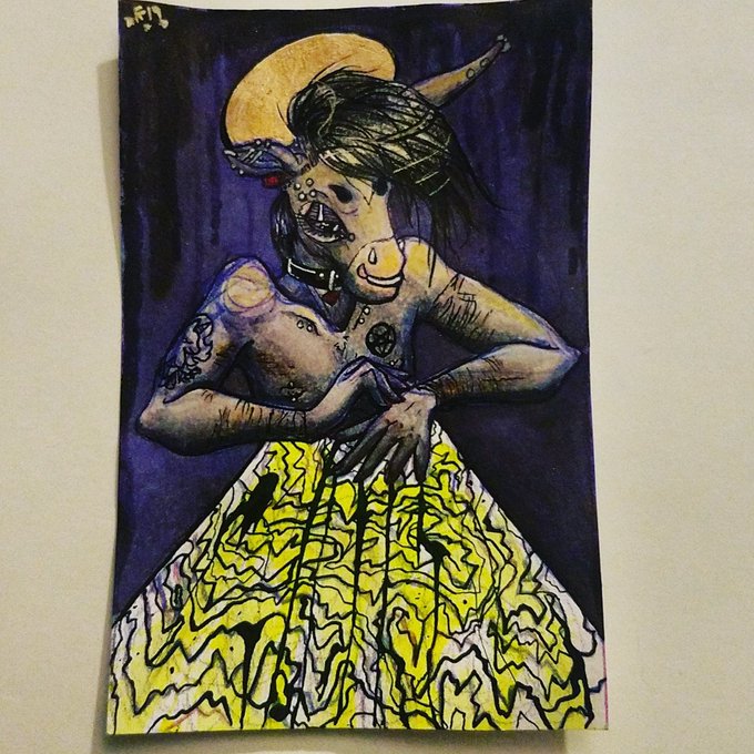 Forgot to post last night but Day 9 - swing Came out different than i wanted will probably use as a reference for a larger, more involved piece in the future... #transartists #queerartists #inktober2019 #inktober #inktoberday9 #mixedmedia #mentalillness #justbpdthings