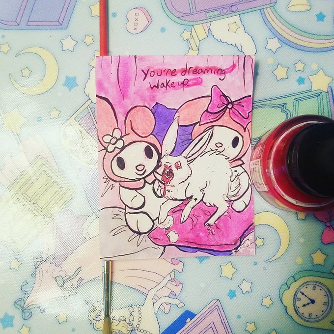 Day 16 - wild You're dreaming. Wake up. #transartists #queerartists #inktober2019day16 #Inktober2019 #inktoberday16 #MentalHealth #queerart #mymelody #rabies #rabbit