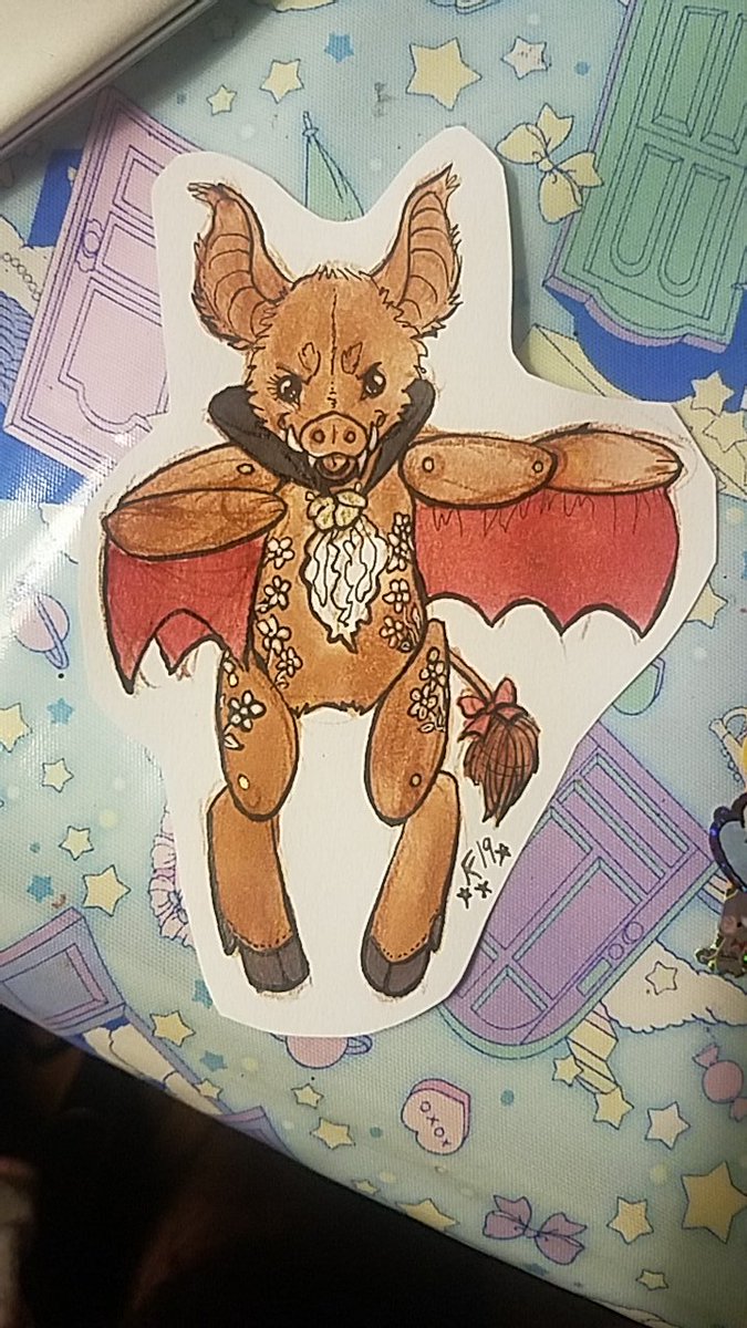 Day 28 - Coat Made a new Woodland Friend ♡ Boar x little brown bat with a jointed cloth nody and embroidered white flowers, with a rarity of two stars. They are $35! This design can ONLY be used in SFW contexts. #Inktober #inktoberDay28 #Inktober2019 #adoptable