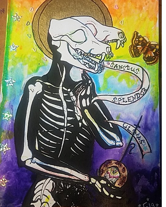 Day 29 - Injured Rough latin translation of "Saint Glittersore". In this instance splendid is used to mean sparkling, bright. An attempt at illustrating a figure of my dysphoria and neuroses. #transartists #queerartists #inktober2019day29 #Inktober2019 #Inktoberday29 #Dysphoria