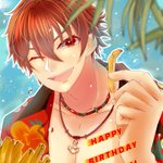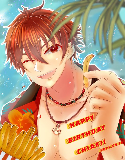 遅刻した〜! もりさわ!!誕生日おめでとう🎉🎂🎉 季節感ガン無視だけど 関西はまだ熱中症警戒アラートとか出てて全然レッドホット🔥だからゆるちて〜 幸せになってね✋ ポテトくれ〜🍟 #守沢千秋誕生祭2022 #守沢千秋生誕祭2022