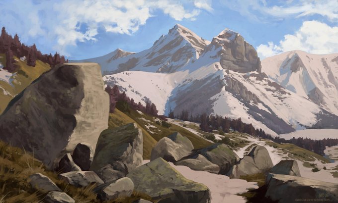 Hello #PortfolioDay I'm Aurélie, freelance landscape artist artstation.com/globulr inprnt.com/gallery/globul…