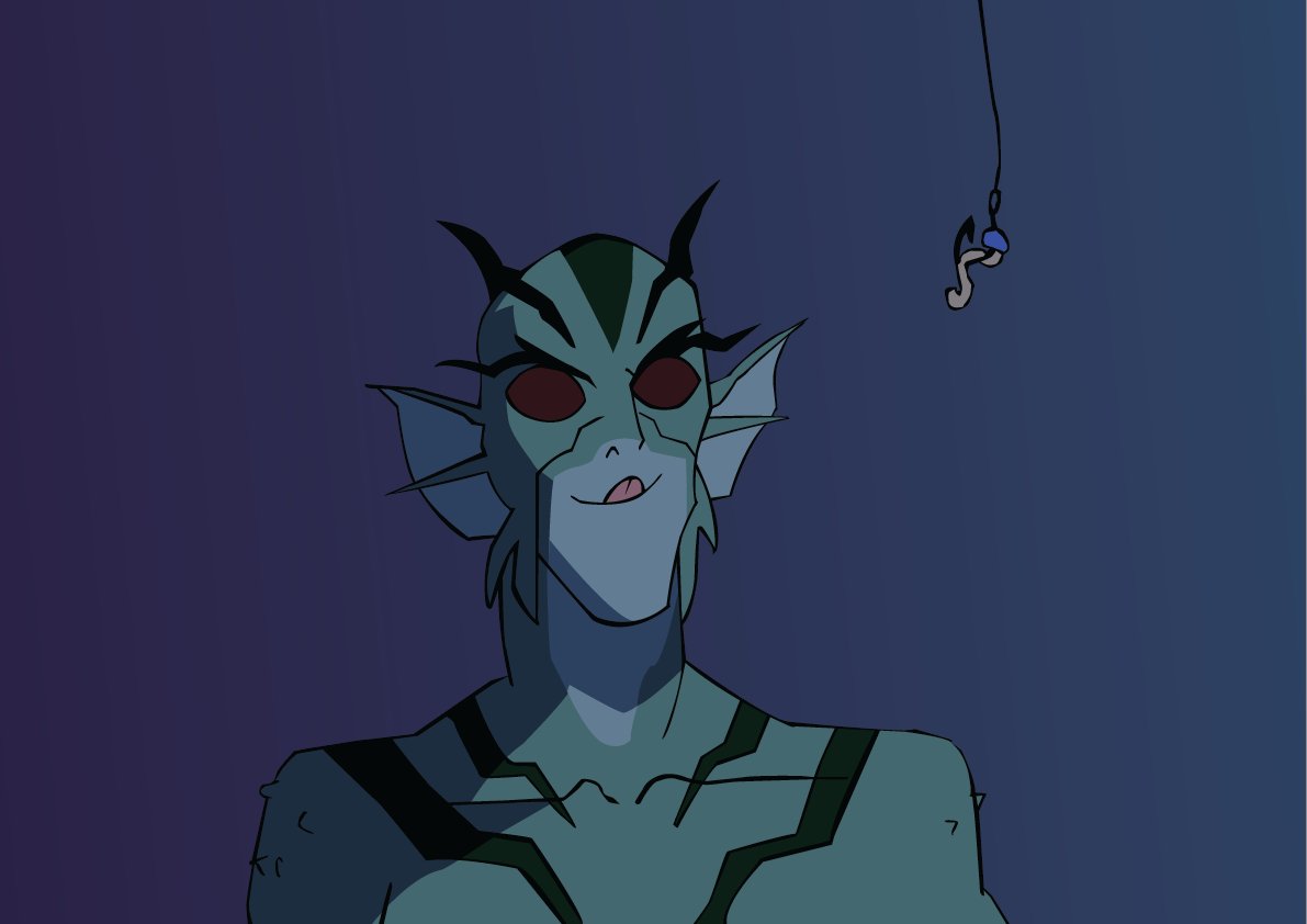 Day 3 Bait Originally the idea for this was to have #aqualad licking his lips and getting ready to eat a worm but this was funnier because #lagoonboy would hate this. #youngjustice #youngjusticeinvasion #atlantis #dcfanart #fanart #dccomics #fishboy #inktober2019 #drawing #art