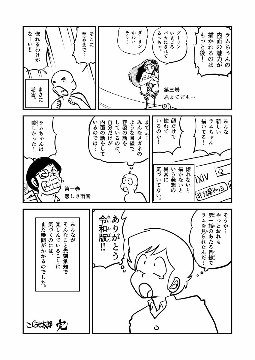 #今月描いた絵を晒そう #うる星やつら モノクロ線画集。 恐ろしいことに4枚目ではあと1ヶ月と言っているのに、1ページ進んだ以外は全部Web用作品ばかり描いていて肝心の原稿が進んでいない… 諸星にょたるはコンテに行き詰まって別作品になりました。