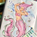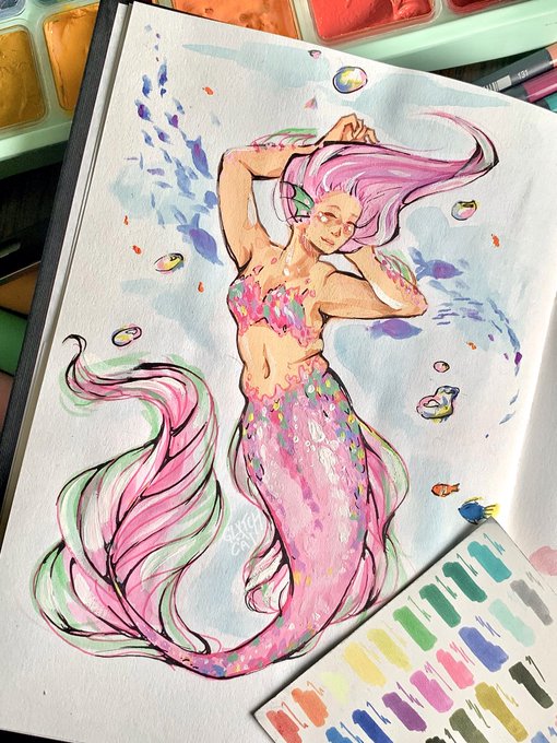 My Mermaid for Mer-May! 🥰 i absolutely loved painting her, and using my new Gouache paints 💕 #mermay #mermay2022 #mermaid #drawing #artistsontwitter #artwork #painting #Gouache #fantasy #oc #illustration #conceptart