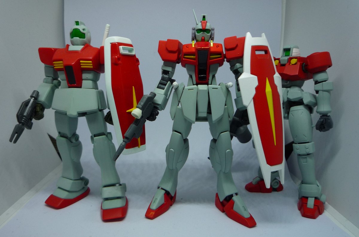 イデオンやジムII、ゲムカモフはいませんが左右の画像にそれぞれ1体ジム以外を忍ばせてみました。ナンチャンを探せだとレベル2くらいかな #ジムの日
