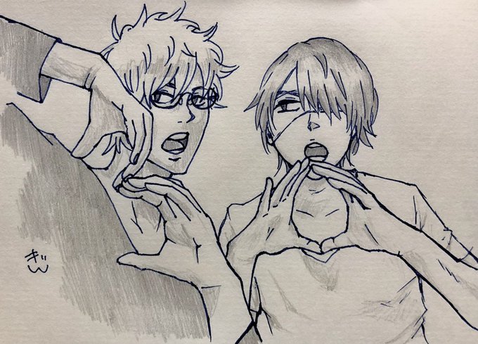 1 3 実際に撮った写真を見て描いてみた! 元々は30歳おめでとう写真…笑 #銀高 #3Z #銀魂 20/05/19 23:12
