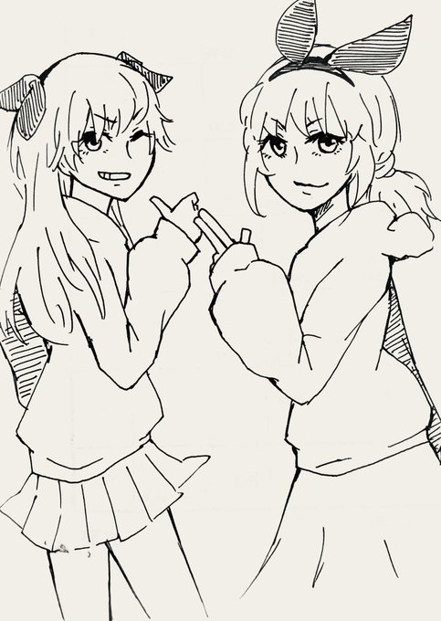 仕事休憩中。 暇なのでおめシス描いた! 新しい髪型可愛すぎる! どっちも好きだ〜次は新衣装出ないかなぁ〜☺️ #おめがシスターズ #おめシス #おめシスはいいぞ