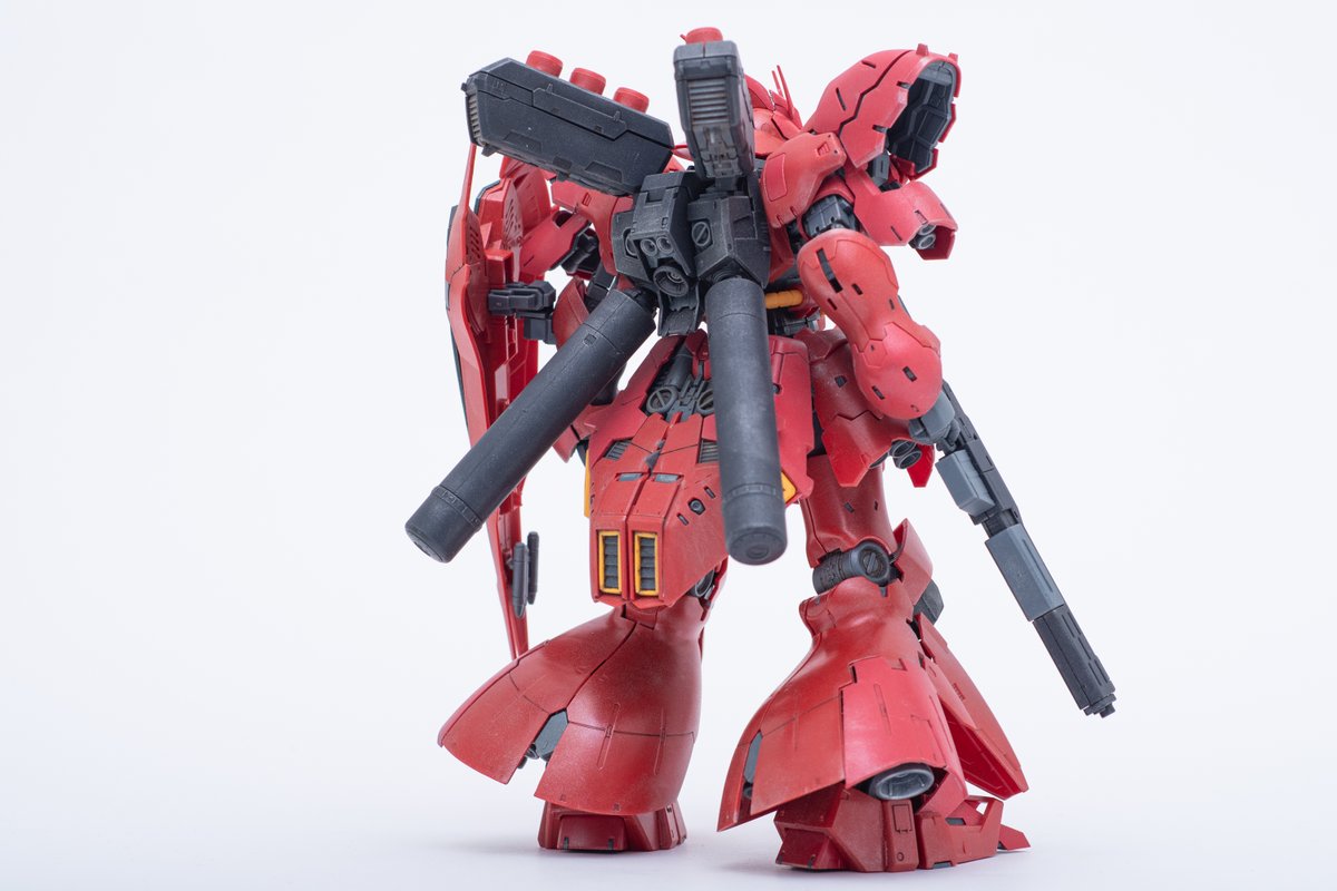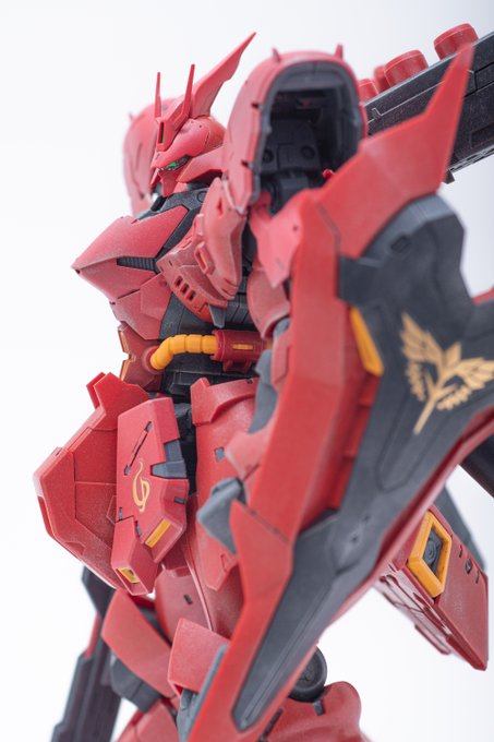 15 33 [RG 29 サザビー] 塗装とかは出来ないけどそれっぽく・・・。上手く誤魔化せんかとウェザリングマスター塗ったくって仕上げました。 エッジが目立つのでイイカンジ。 #ガンプラ 20/05/10 00:02