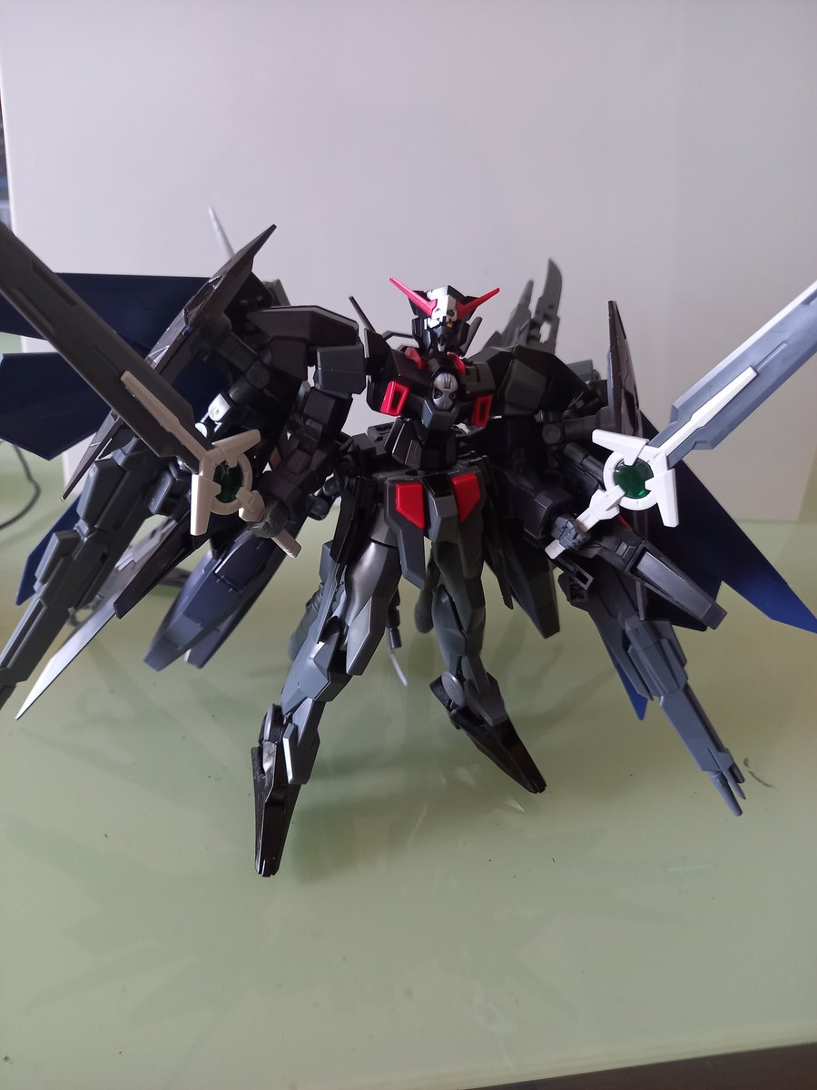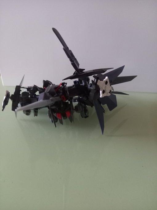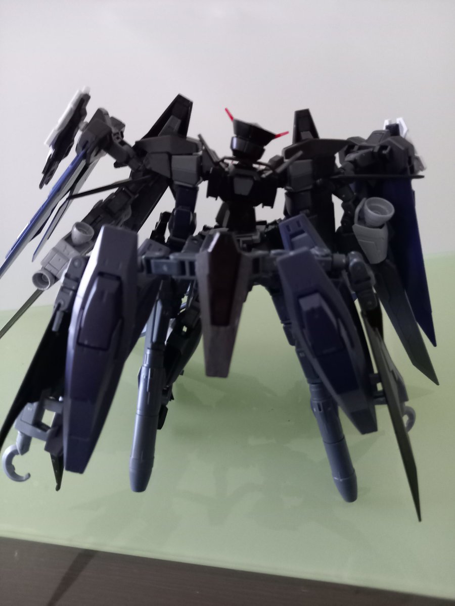 #ガンプラはどんな自由な発想で作ってもいいんだ #ガンプラの画像を貼るとRTされると聞いて 我が家のダークハウンド(ストライダー形態その一)。AGE2ノーマルのストライダー形態の上位互換みたいな性能をイメージ。 正直な話、改造の結果変形させるのが大変になった。