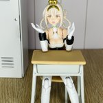 Seriaの企画部には1/12の民がいるに違いないと言われてきたけど、間違いない事実である😆 横から見ると膝から下が机のフレームからはみ出してるけど、アングルでどうにでもなりそう #メガミデバイス #セリア