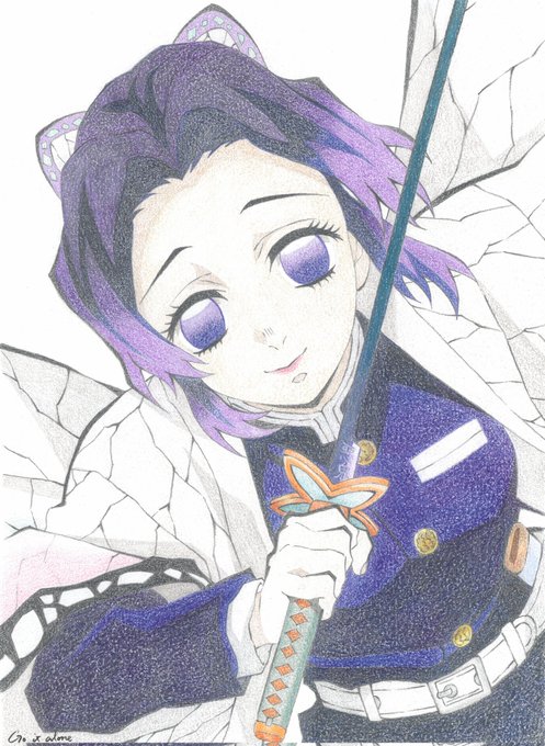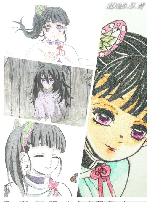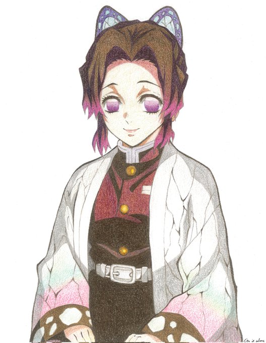 しのぶさん誕生日おめでとう✨ これもイラスト記録集に小さく載ってた物の模写です。 まだ下の方を描き途中なので、完成したらまた後日投稿します! #胡蝶しのぶ生誕祭2023 #胡蝶しのぶ誕生祭2023 #模写 #色鉛筆