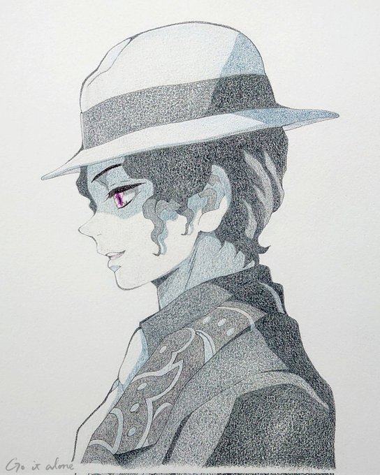 お誕生日おめでとうございます✨ 原作のシーンを参考に、アニメ風に仕上げてみました。 塗りは水彩筆ペン使ってみましたが、難しかったです… #伊黒小芭内生誕祭2022 #伊黒小芭内誕生祭2022