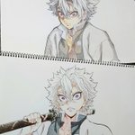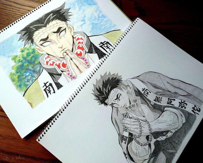 お誕生日おめでとうございます✨ 今年は描けなかったので、昨年と一昨年に描いたものでお祝い! どちらも描いた時のことをよく覚えてて、お気に入りの2枚です。 #悲鳴嶼行冥誕生祭2022 #悲鳴嶼行冥生誕祭2022 #鬼滅の刃イラスト #模写 #色鉛筆