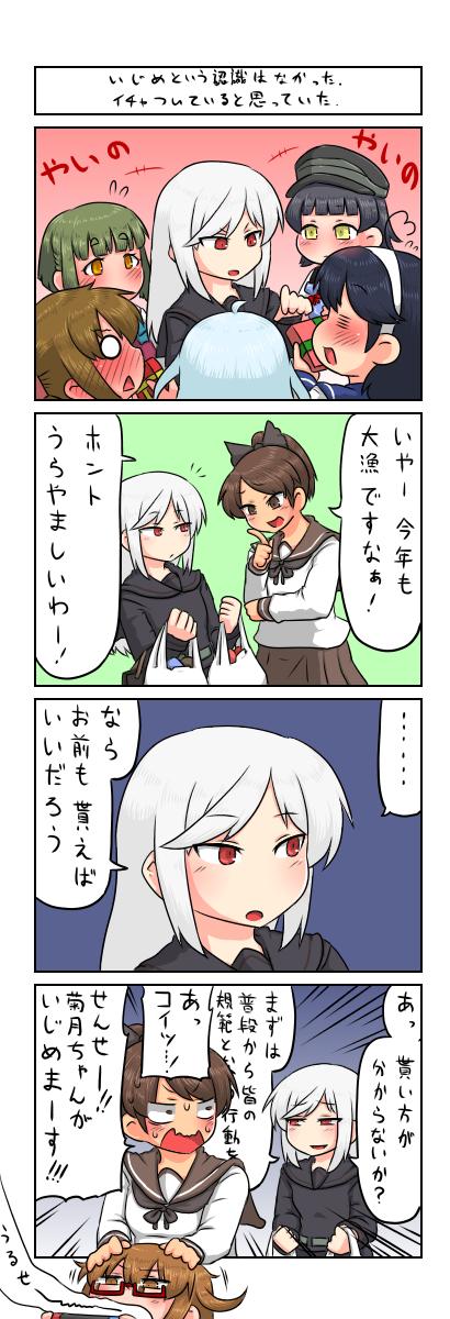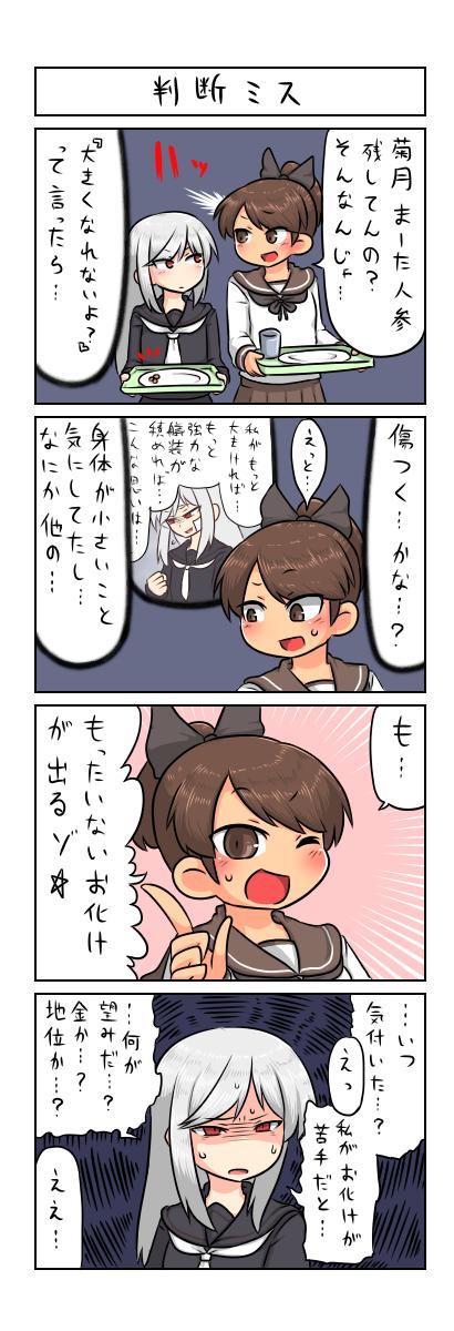 敷波が菊月にちょっかいをかける艦これ4コマ。