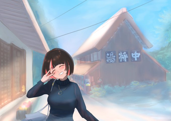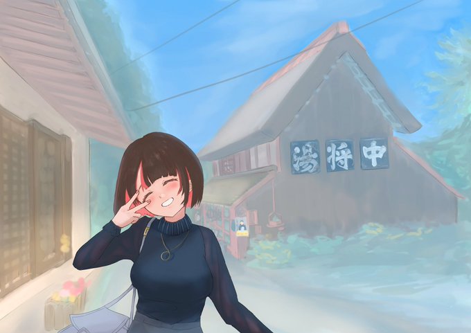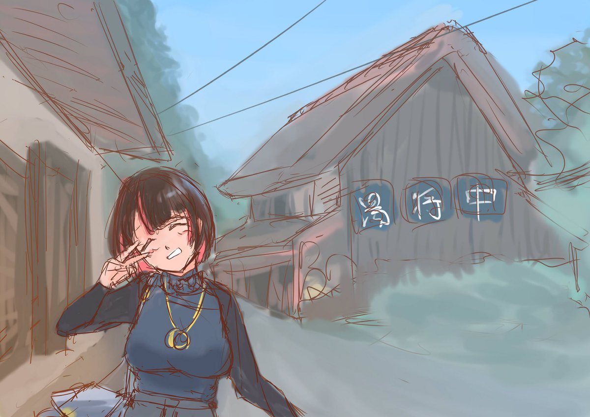 お出かけシリーズその2〜吹屋ふるさと村…の手直し_φ(・_・ 赤くて素敵な街並み、またゆっくり歩きたいです✨ #illustration #イラスト #絵描きさんと繋がりたい #イラスト好きな人と繋がりたい