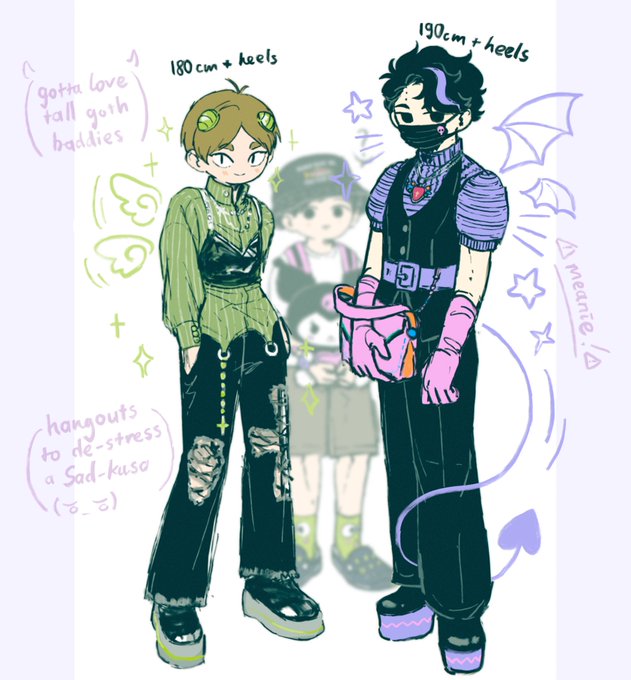 goth baddies 💚🖤💜 + ennoshita’s ass kicking outfit (Even timeskip Ennoshita, a very averagely built man, looks like a middle schooler next to Sakusa and Komori)