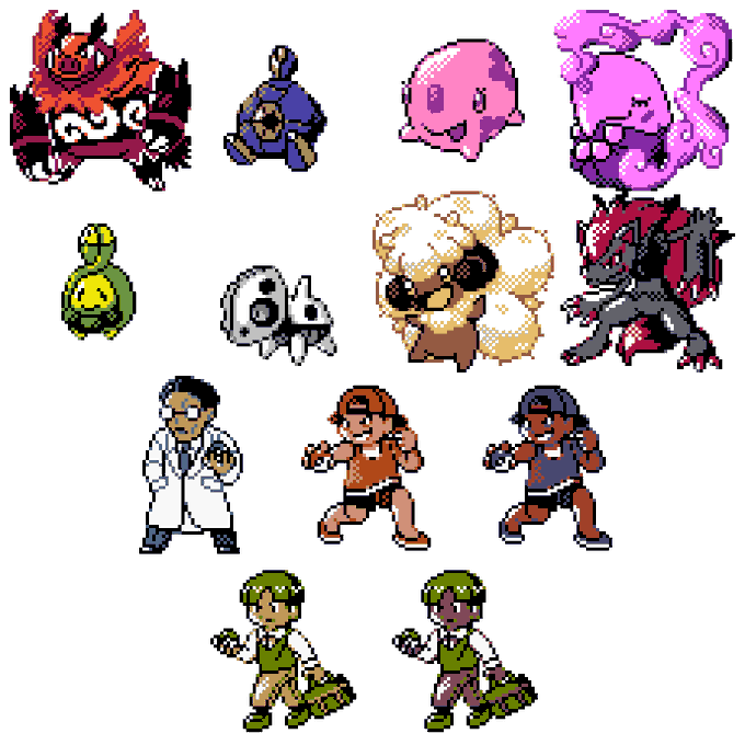 With v1.0 of Pokemon Black and White 3: Genesis finally releasing, I should probably show off the sprites I contributed to the game a while back #PixelArt #ใใใ็ตต