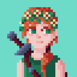 I felt like practicing larger scale portraits for a while today- The character is the protagonist from my wip metroidvania, but I'm not going to ever actually use this for the game tho- just trying to improve :3 how's it look? /genq #pixelart #lostcenturypalette #ドット絵