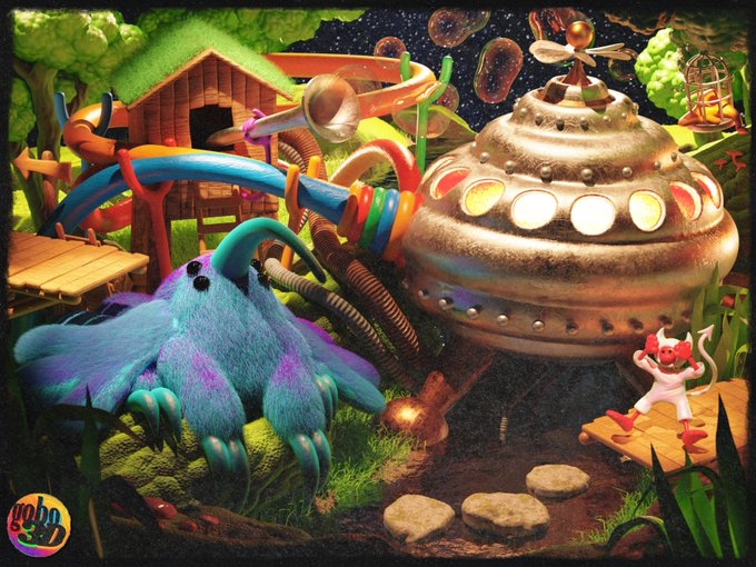 ๐ฃ๏ธHappy #PortfolioDay, I'm Gobo! ๐๏ธI'm a 3D artists specializing in surreal, vibrant, detailed scenes! ๐จDM or email me at gobo3D@gmail.com for freelance work or personal commissions!๐