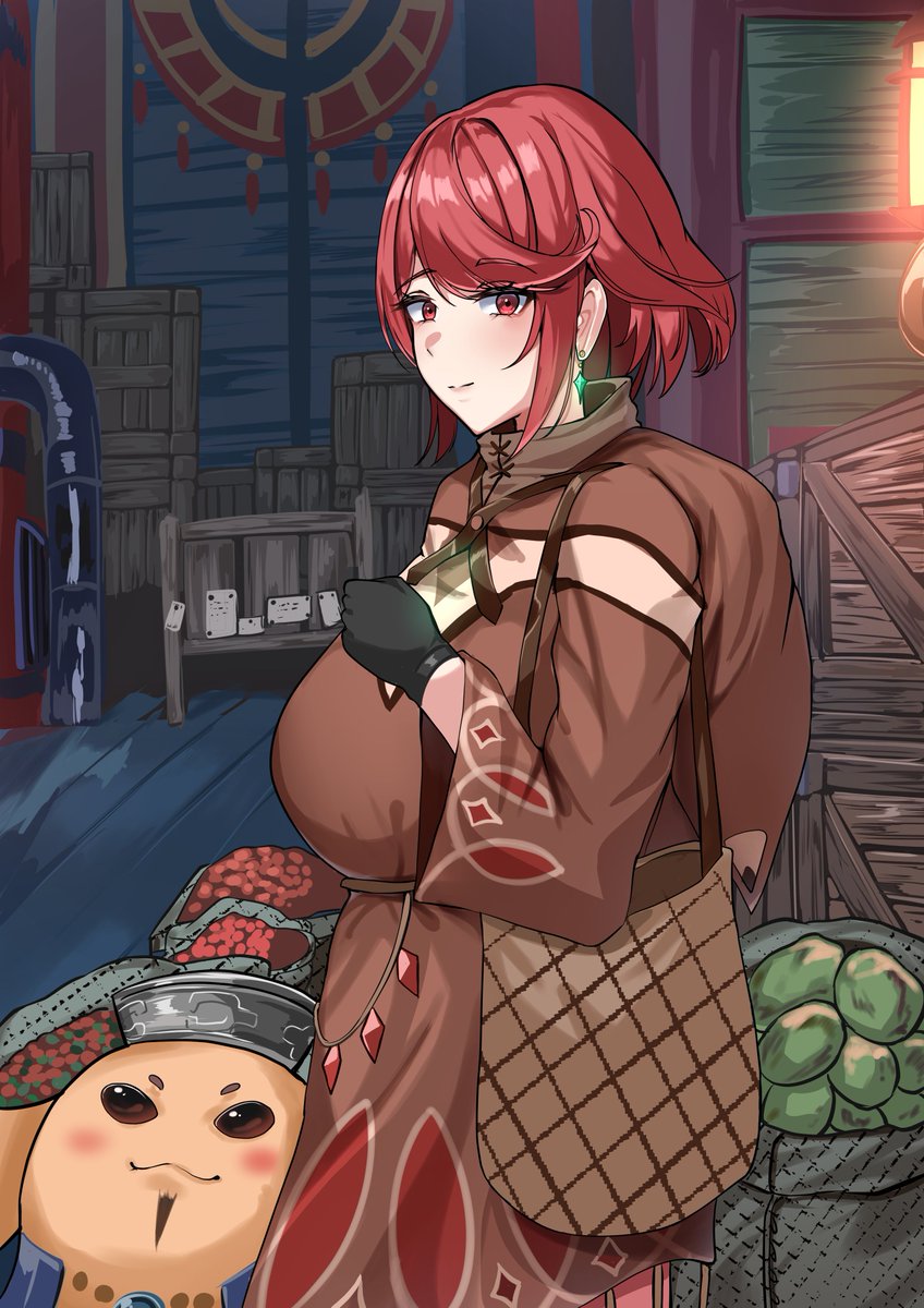 327 1875 アヴァリティアで買い物するホムラちゃん。多分表紙絵にします 23/07/21 02:34