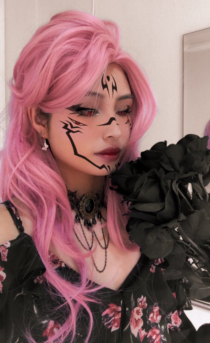 I was actually cosplaying as #Seraphine from #LeagueOfLegends but this filter made it look like a female ver. of #sukuna from #JujutsuKaisen ٩(˘◡˘)۶ #jujutsukaisencosplay #sukunacosplay #cosplay