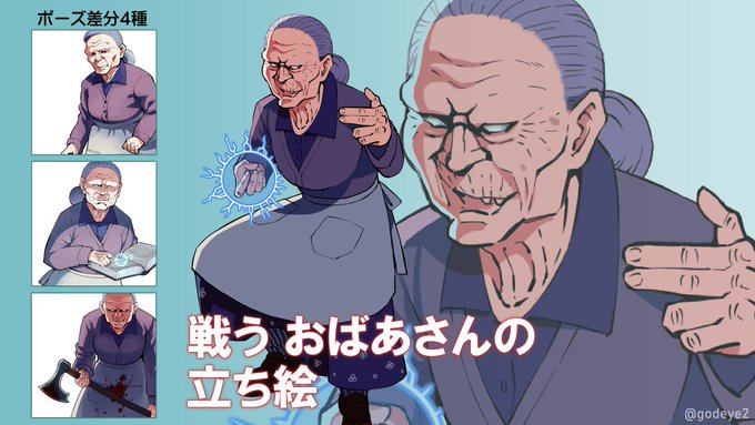 今年の元旦に配布したおばあちゃんもいます!あわせてどうぞ! 戦うおばあさんの立ち絵 | ゴッドアイ編纂室 godeye.booth.pm/items/3544499 #booth_pm