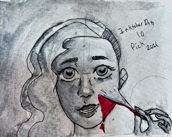 TW: BLOOD Inktober day 10!!! Whoop!!! This one is pretty freaky, I’m vibin with it. #dermatillomania #pick #inktober